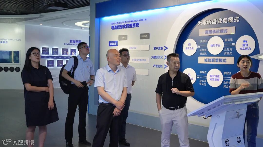 在路歌展厅,杜兵向张文一行详细介绍了路歌的发展历程及核心业务,张文一行对路歌在引领货运行业数字化变革以及推动改善货车司机生存环境方面所取得的成绩表示了赞赏。