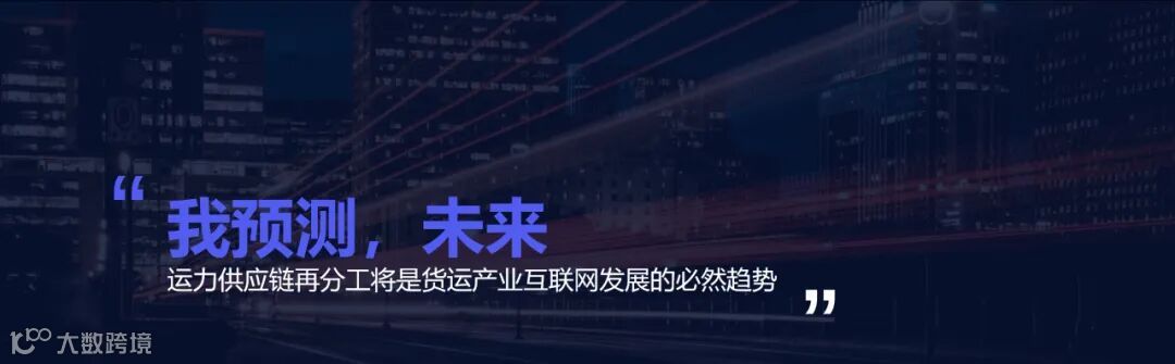 货运的数字化时代已经来了,未来供应链的再分工将是货运产业互联网发展必然趋势,希望大家不再用旧时代的思维去看待新的机会。