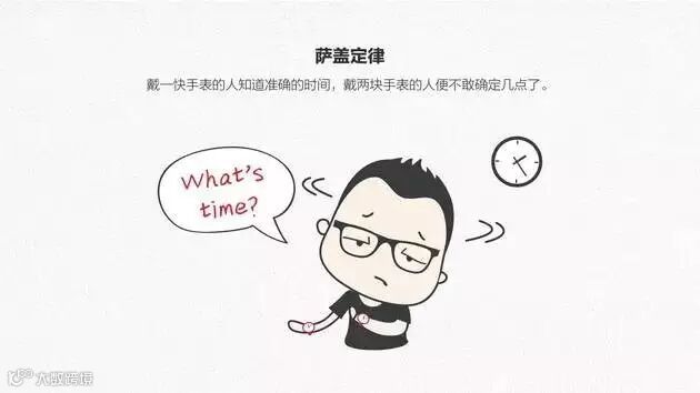 萨盖定律:戴一块手表的人知道准确的时间,戴两块手表的人便不敢确定几点了。