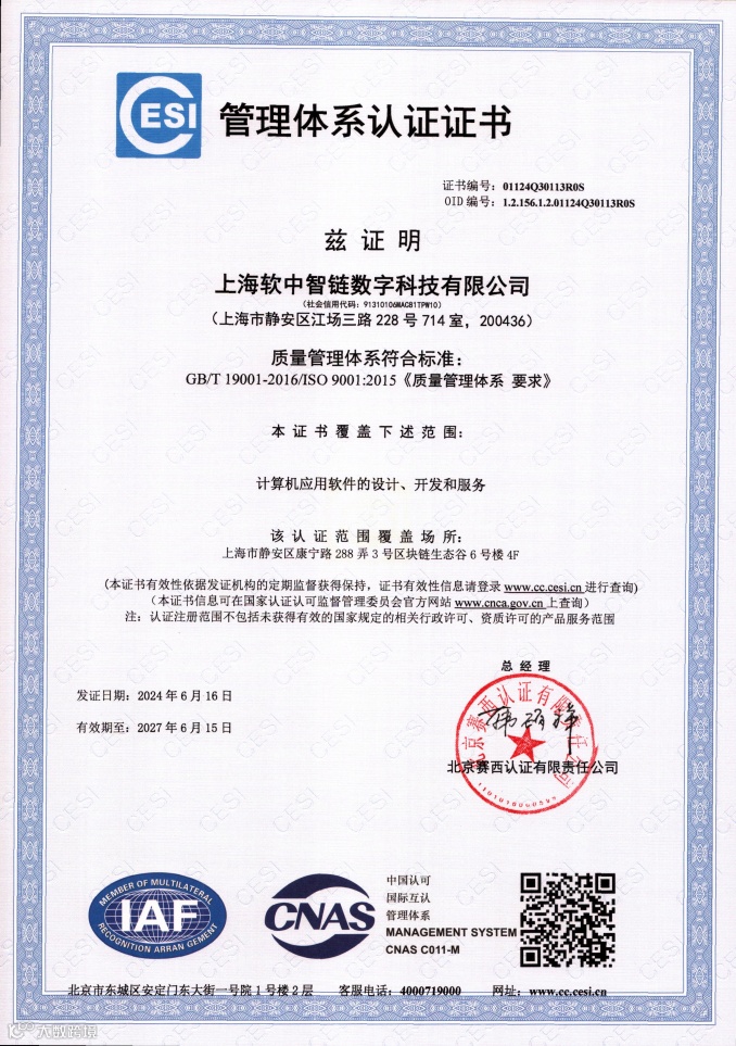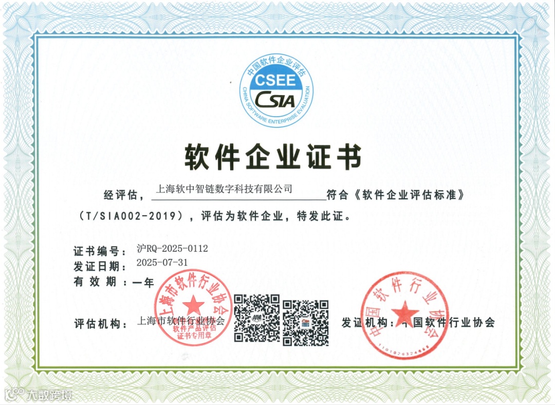 15日,软中智链荣获区块链企业认定资质,彰显在区块链领域的技术实力与合规能力;