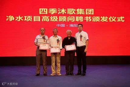 四季沐歌集团总裁李骏为王占生教授、鄂学礼主任、白鸥总编颁发净水高级顾问聘书