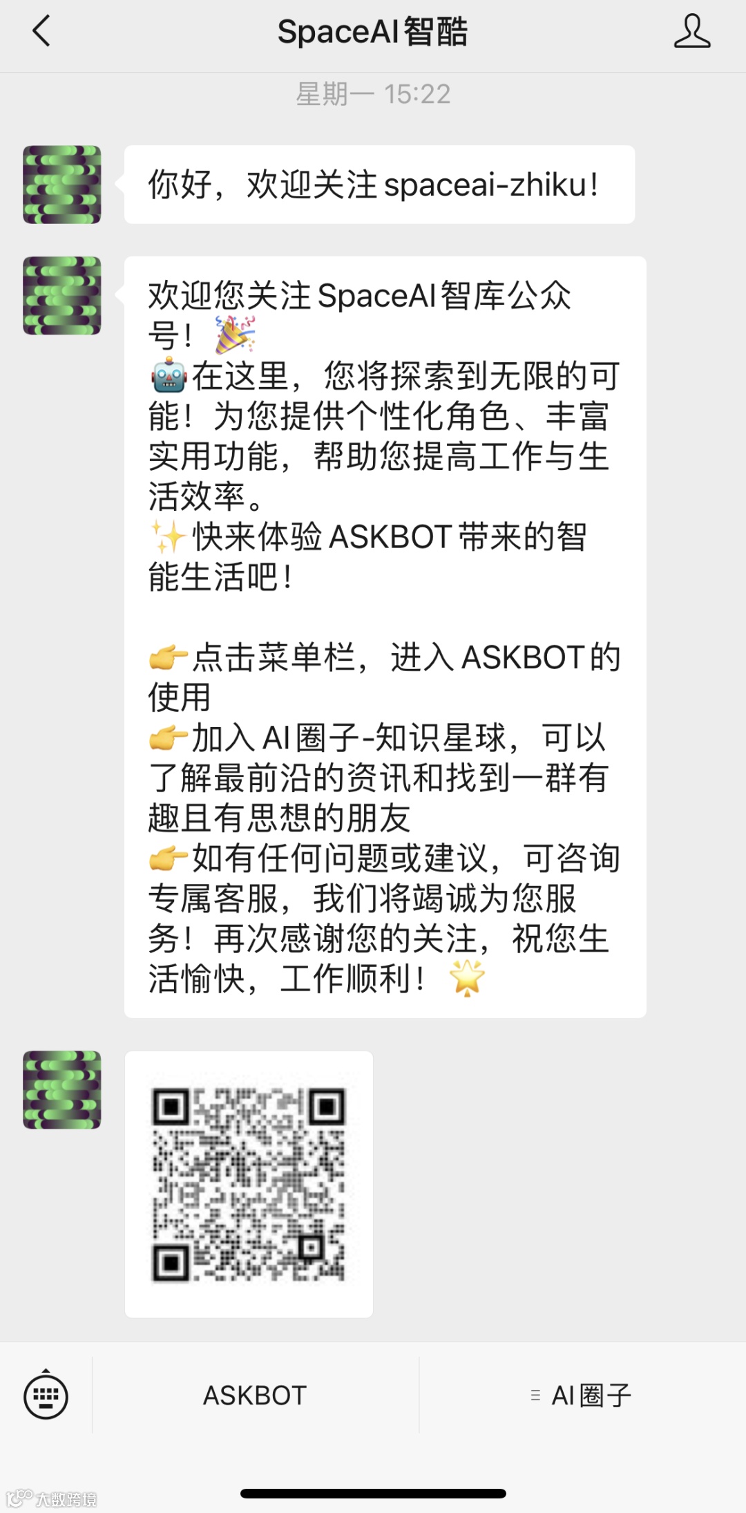 可以关注微信公众号「SpaceAI智酷」使用ASKBOT的服务~