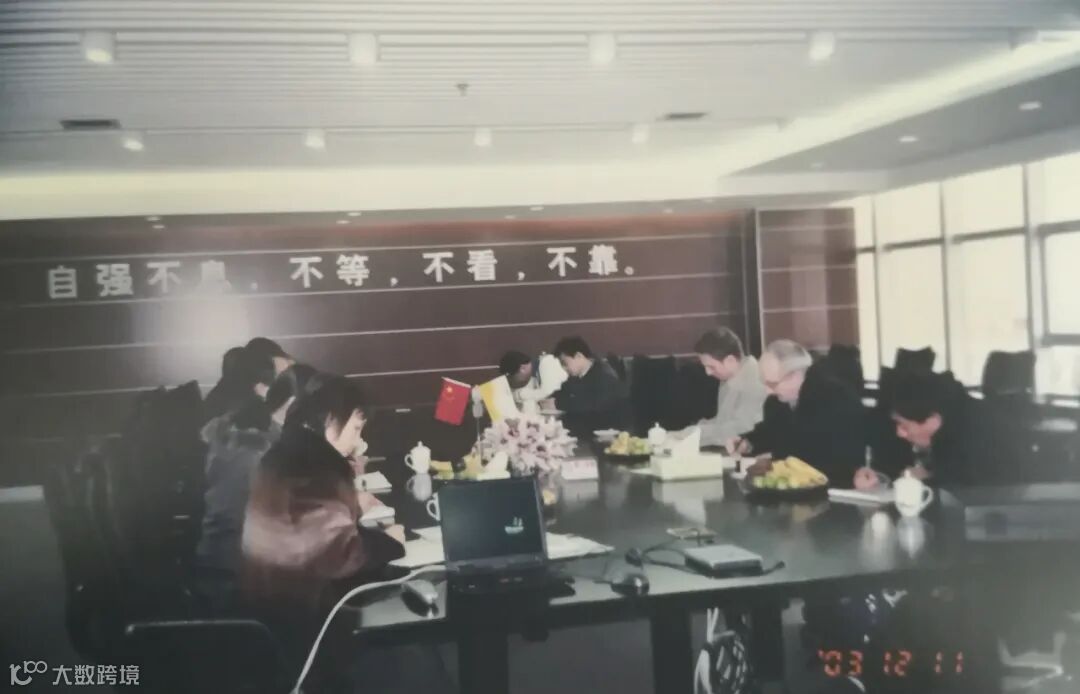 ▲ 2003年,公司海外产品事业部与外商进行业务洽谈