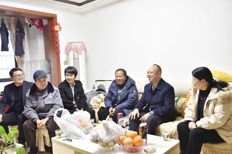 在公司风电叶片光明工厂一线员工刘镇家中,杨治国向刘镇及其家人多年来对公司的支持与贡献表示感谢,并详细了解了其家庭情况和生活所需。
