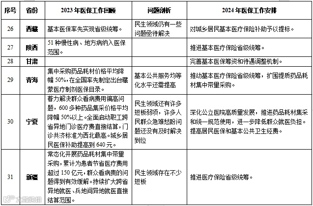 附表:全国31省份2024年政府工作报告医疗保障相关内容