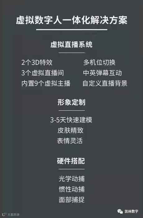 面对着巨大的市场需求,有着领先三维动画制作技术的沈阳凯林数字,将为客户带来了虚拟数字人一体化解决方案。助力企业驶向元宇宙的新蓝海。