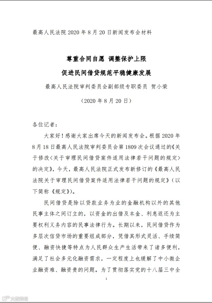 近日,最高人民法院举行新闻发布会,发布了新修订的《最高人民法院关于审理民间借贷案件适用法律若干问题的规定》。