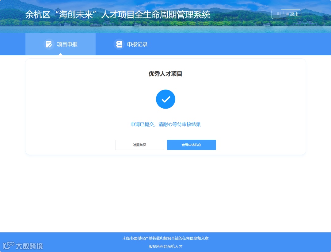 (1)申报地址:项目方请于PC端登录余杭“海创未来”人才项目全生命周期管理系统(https://yhrcm.zzb.hzyuhang.cn/yhlifecycleweb/),点击“用户登录”进行申报。