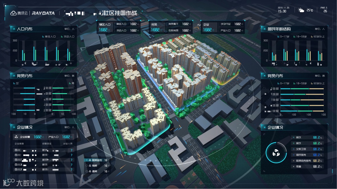 在智慧城市加速的背景下,越来越多的社区开始建设社区可视化平台,腾讯云合作伙伴了了科技借助腾讯云 RayData Web 搭建社区可视化管理平台,仅需1名前端人员,通过“拖拉拽”的方式快速搭建演示环境,大大释放产研资源;搭建的可视觉化管理平台高度还原真实场景,实现3D社区创新管理模式。