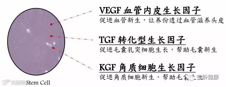 众所周知,干细胞是一种种未充分分化,尚不成熟的细胞,结合它强大的分化与复制功能,人类已成功运用干细胞技术实现了自体皮肤与组织器官的再造,让移植治疗与再生医学迈向了新高度。同理,干细胞技术也被应用在了治疗秃发的领域:唤醒头发根部毛囊组织中的细胞,启动生发周期,从而恢复自体的生发功能。