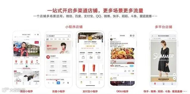 除此之外,圈商系统裂变商城不仅仅只有微信小程序商城,能够一站式开启多渠道店铺,百度、QQ、微博、快手、陌陌等多场景都能适用,帮助企业导入更多流量。