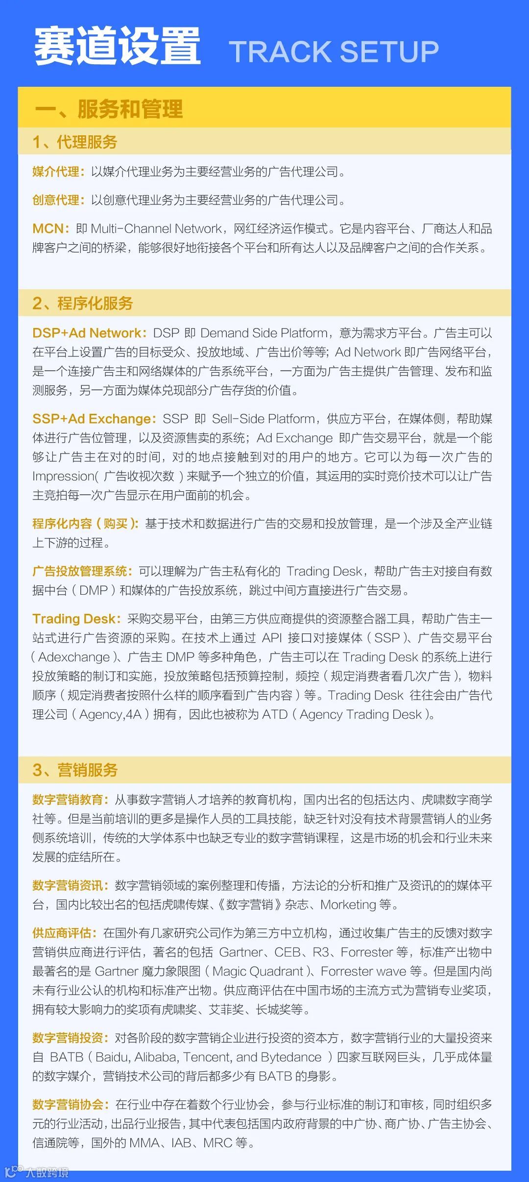 。在赛道设置板块也着重进行了更新,比如今年增加了大家所关注的私域营销咨询、私域营销运营、MCN等类别,其中涉及的具体赛道及内容如下: