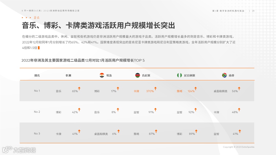 以上为 DataSparkle《2023非洲移动应用市场格局之变》的内容节选,报告全文共包含了3部分、80余页内容,如需获取或阅读报告全文,请查看网页:www.datasparkle.net