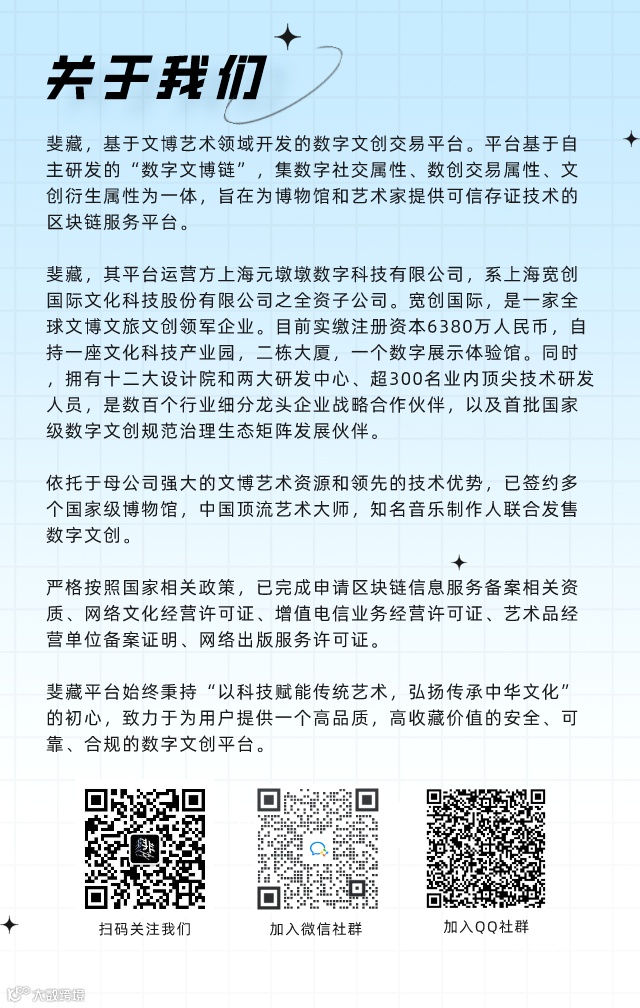 1. 本次『惊喜盲盒』里4款元墩墩均来自斐藏自有IP“元墩墩家族”,未来平台将全力推广打造并完善此IP,后期将有相关的元墩墩IP实物预告。“元墩墩家族”会持续不断努力,成为潮玩潮流领域的顶流IP。“元墩墩系列”藏品将在后期参与合成活动。