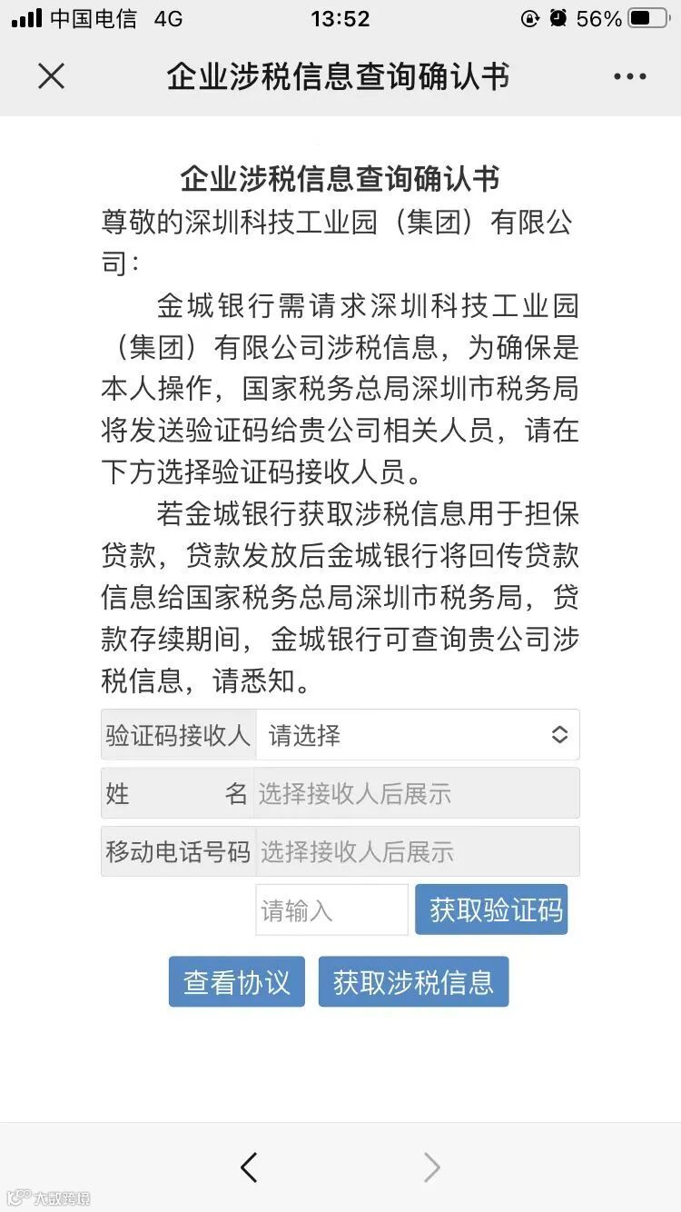 选择对应的相关人员进行短信验证,并点击“获取涉税信息”;完成企业认证会看到授权额度页面
