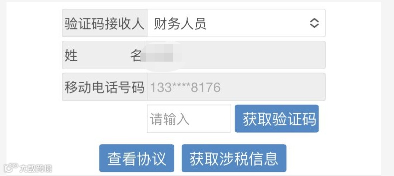 选择对应的相关人员进行短信验证,并点击“获取涉税信息”;