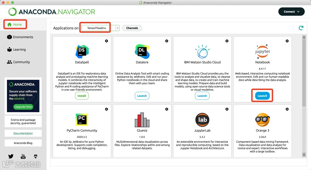 Anaconda Navigator Home 主界面