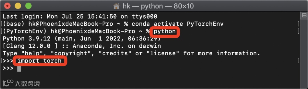 PyTorch的安装,在macOS和Windows下安装方法相同。创建虚拟环境,可以通过终端,也可以通过Anaconda Navigator,这里我们先看看如何通过终端安装PyTorch框架,下一个部分会演示通过Anaconda Navigator图形界面安装TensorFlow框架。