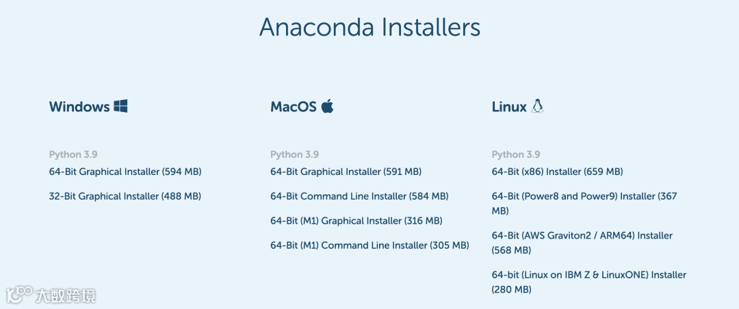 下面我们介绍 macOS 和 windows 操作系统下 Anaconda 的安装。