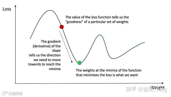 我们在训练中的目标是找到一组最佳的权重和偏差,以最小化损失函数。