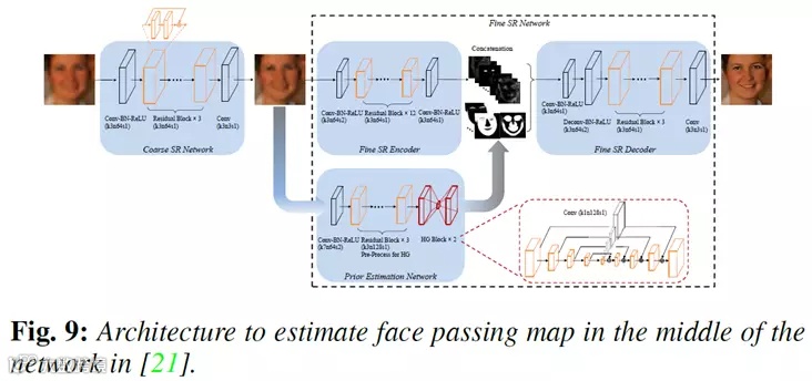 典型的方法如下图所示,研究人员提出了FSRNet网络模型,这个模型在网络中间进行人脸先验估计。