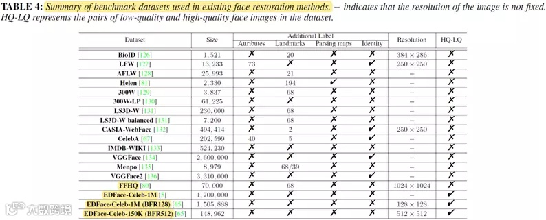 人脸复原任务相关的公开数据集以及相关统计信息总结如下:
