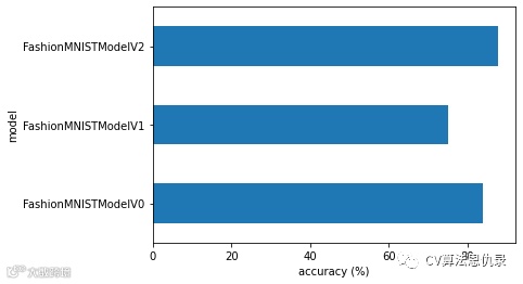 由于我们正在使用 load_state_dict(), 因此我们在创建 FashionMNISTModelV2() 的新实例,需要使用与保存的模型 state_dict() 相同的输入参数。