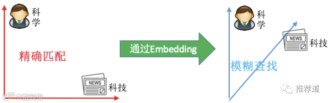 Embedding到底是如何提升“扩展”能力的?简单来说,Embedding将推荐算法从“精确匹配”转化为“模糊查找”,从而能够“举一反三”。