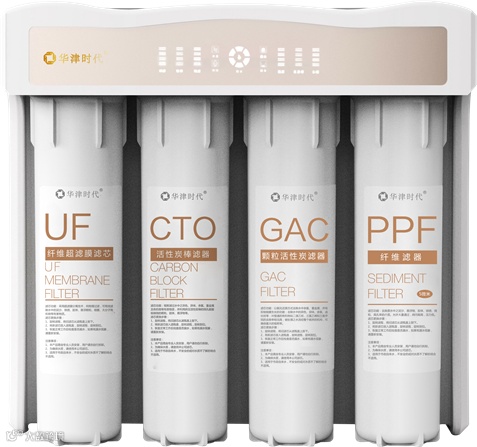 整机采用15寸滤芯、双椰壳活性炭滤芯、压缩炭棒添加安全阻垢材料(FOF阻垢剂)、PVDF大流量超滤膜黄金组合;