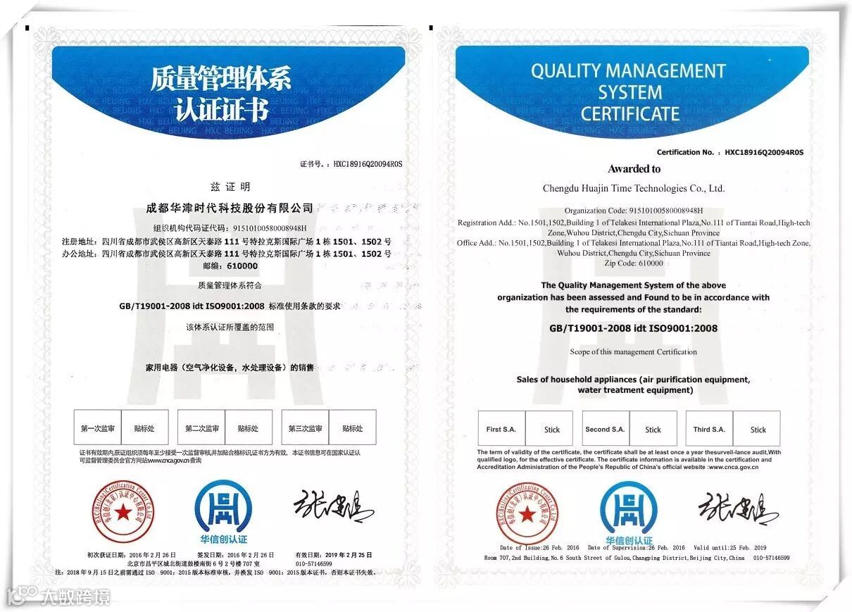 成都华津时代科技股份有限公司作为中国质量检验协会评定的“全国质量和服务诚信优秀企业”,一直将建设诚信企业的理念内化于心,外化于行,始终追求“品质第一,客户至尊”,认真践行承诺!