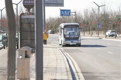 3月6日,一辆无人驾驶小巴在北京地铁郝家府站至城市图书馆间载客运行。视觉中国供图