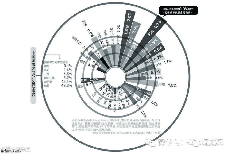 2014 年5 月,世卫组织发布全球约1600 个城市的空气质量数据,印度的德里高居榜首。中国采用的是2010年数据,若和德里一样采用2013 年PM2.5年均值的话,邢台数据要比德里高。