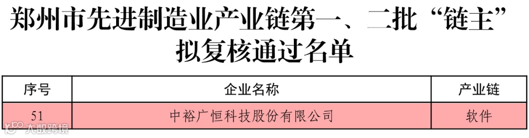 此次通过“链主”企业复核,既是对中裕广恒过往成绩的肯定,更是对企业未来发展的鞭策。公司将继续秉持开放共享、协同创新的理念,携手合作伙伴,共同推动郑州市先进制造业向高端化、智能化、绿色化方向迈进,为区域经济高质量发展贡献更大力量!