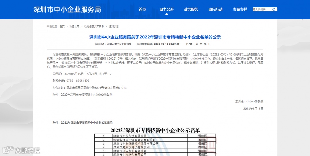2022年深圳市专精特新中小企业公示名单