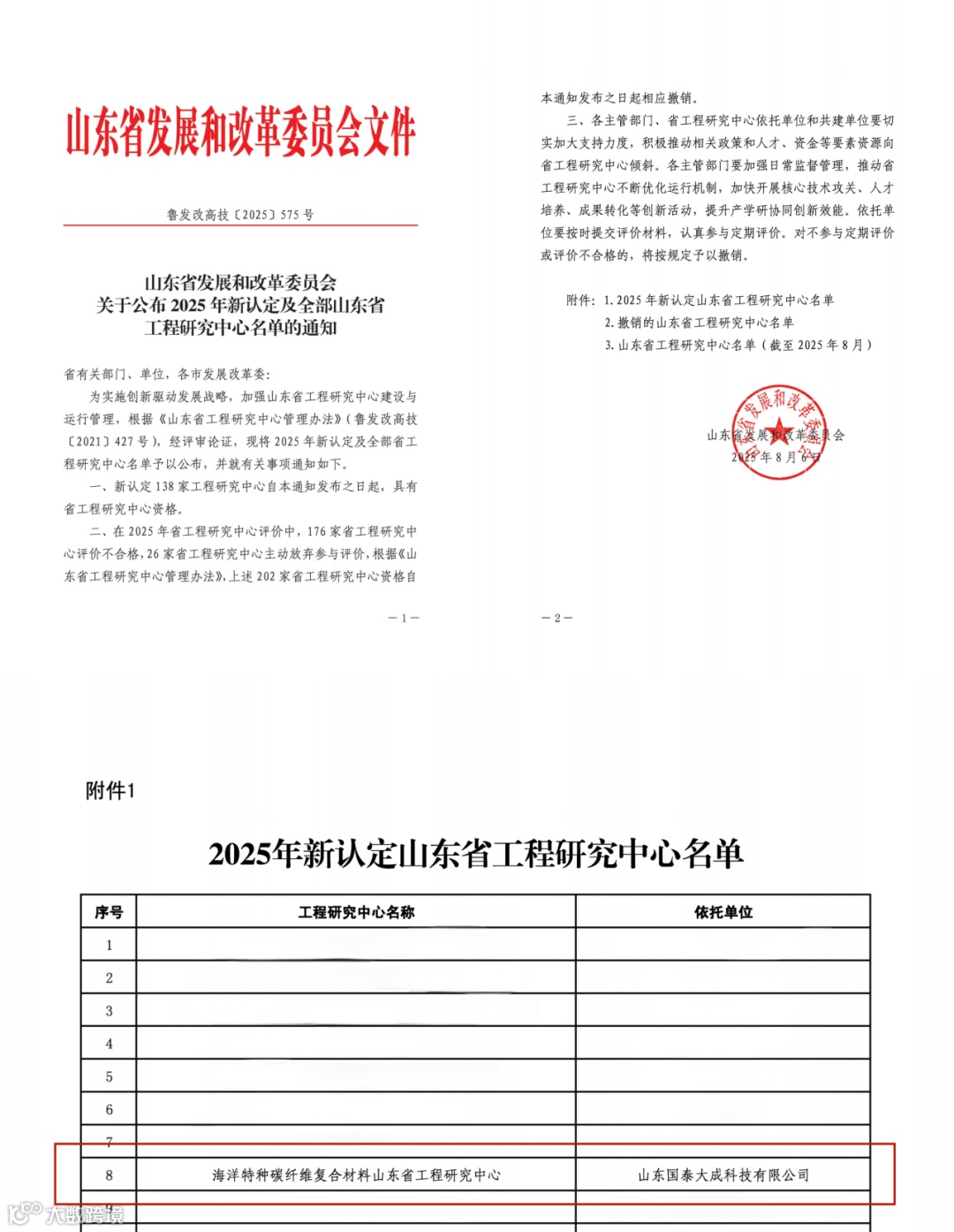 公司与中国海洋大学深度协同,围绕海洋环境下碳纤维复合材料的技术攻关与应用拓展,共建的研发平台被成功认定为“海洋特种碳纤维复合材料山东省工程研究中心”,加速了公司在核心技术突破、项目孵化落地、产学研深度融合方面的进程。基于在碳纤维领域持续增长的主营业务收入、研发投入、创新实践成果、数字化水平,公司被认定为“山东省专精特新中小企业”,标志着公司在专业化、精细化、特色化、新颖化发展路径上获得了权威认可。2025年11月,公司创新团队凭借“基于TRIZ 理论聚丙烯腈干燥系统的开发及应用”项目,以山东省赛区一等奖晋级国家总决赛并最终斩获大赛三等奖,为我国高端碳纤维材料国产化替代提供关键技术支撑。此外,公司还先后获批建设“泰安市重点实验室”“泰安市一企一技术中心”等创新载体,逐步构建起多层次、体系化的研发平台。