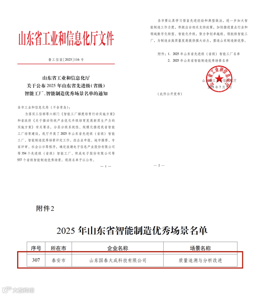 数字化转型征程中,公司已构建起覆盖生产控制层(DCS/PLC/SCADA)→运营管理层(ERP/WMS)→质量追溯层→园区协同层(智慧园区/OA) 的全链路数字化体系,初步实现“设备互联、数据互通、业务协同”的智能化架构,打通了数据壁垒,提升了整体运营效率,为保障产品质量、降低管理风险提供了系统性的支撑。公司凭借前瞻性的数字战略布局与持续投入,一举荣获“山东省实体经济与数字经济创新融合示范企业”“泰安市智能工厂”,质量追溯分析系统入选“2025年山东省智能制造场景”,标志着公司在“数字引擎”的驱动下,数字化转型迈上新台阶。