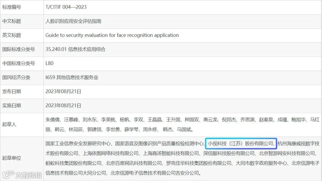 近日,由小视科技(江苏)股份有限公司参与编制的《人脸识别应用安全评估指南》等3项团标正式发布,《人工智能开发平台通用能力要求 第1部分:功能要求》《信息内容识别技术 第3部分:基于视频识别的内容检测服务系统指标要求和评估方法》2项行标将于11月正式实施。