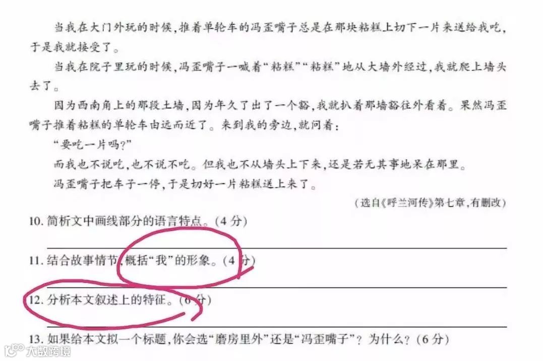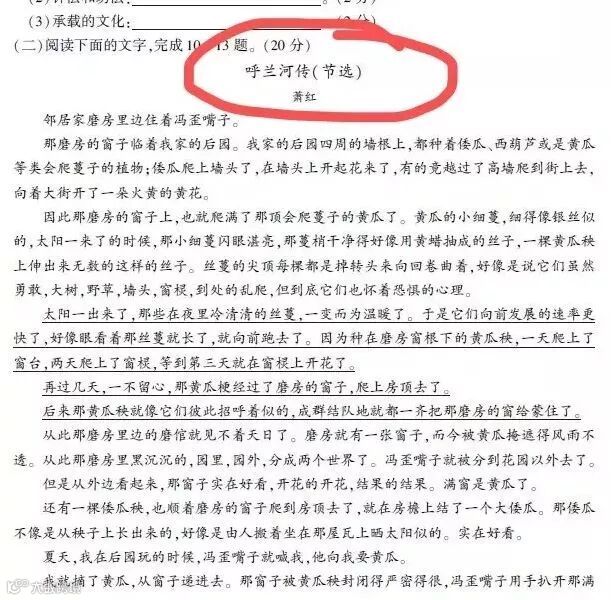 比如,2019年的高考语文大阅读材料题——《呼兰河传》,这篇文章不管老师在课堂上有没有讲过,对于学会了小说阅读方法的学生来说,简直就是送分题!