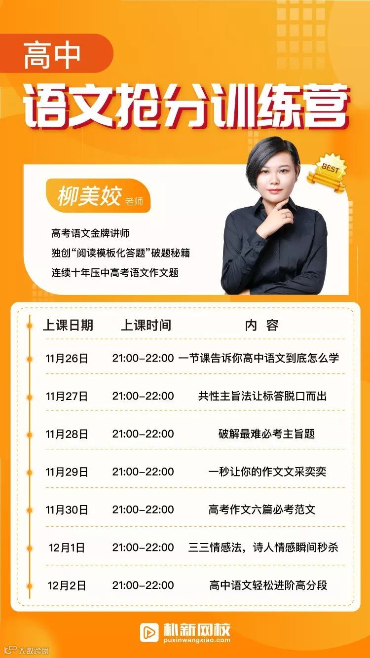 为了让更多的学生面对高考语文时,能有话可写、能少走弯路,柳美姣老师特意为全国高中生带来了高中语文7天抢分训练营!