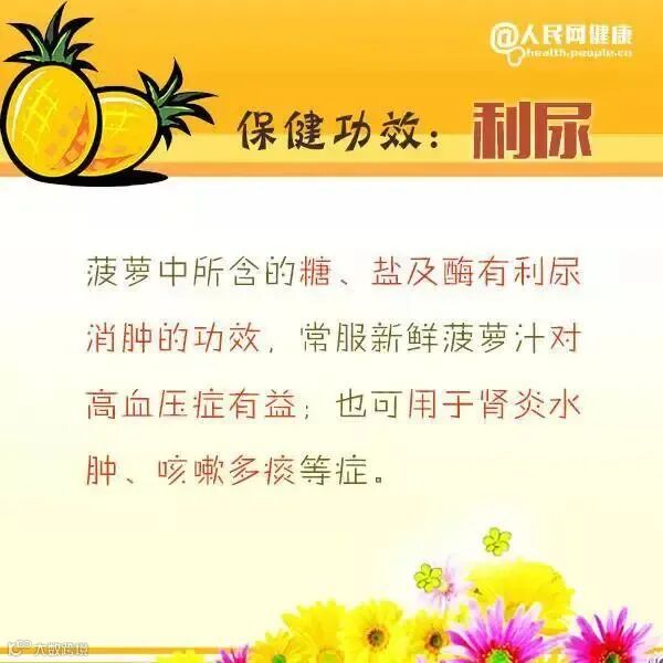 菠萝蛋白酶可以非常有效地改善消化,减少血液凝结、草酸尿酸形成和结石的大小,而且菠萝有利尿作用,方便结石排出。