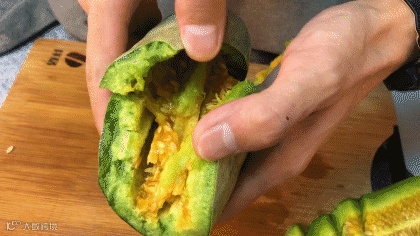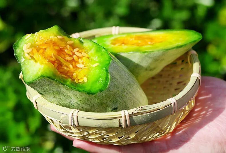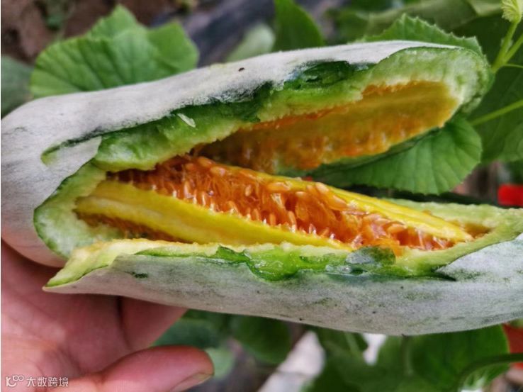 掰开来,嫩绿的果肉包裹着黄澄澄的瓜瓤,满溢着甜蜜的瓜汁,大口咬下,就能体会到什么叫“爽”!