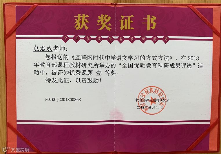 不但如此,包老师原创打磨的多款课程,都获得过高级别的优秀奖项。学生喜欢、专家认可,才是真正会教学、懂学生的好老师。