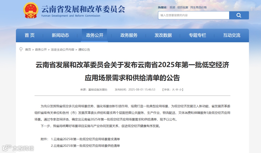 昆明云鹰科技有限公司被纳入云南省 2025 年第一批低空经济应用场景需求和供给清单,这标志着数字鹰系企业在西南地区的低空经济领域也获得了高度认可。云南,以其独特的地理风貌和丰富的旅游资源著称,昆明云鹰的加入,将为云南在低空旅游、农业植保、生态监测等低空经济应用场景的拓展提供有力支持。