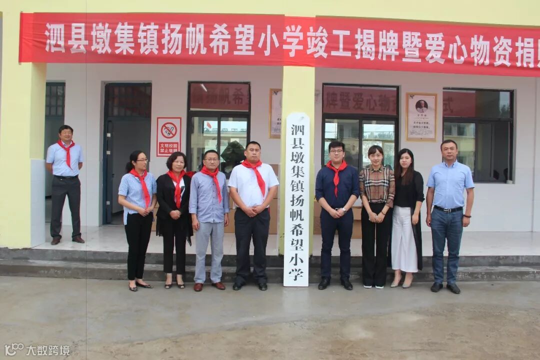 一年后,在安徽省青少年发展基金会与安徽宿州泗县县级领导的支持下,由小视科技主要出资建立的希望小学在安徽省泗县墩集镇竣工。小视科技一行驱车200多公里,来到了雨后初晴的泗县墩集镇尹庙小学。初秋雨水的冲刷让学校像蒙上了一层清新色调的滤镜。这座扩建后的学校和崭新的校舍一样获得了一个新名字——“扬帆希望小学”。