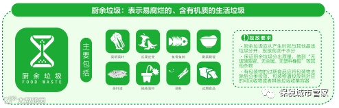 (一)厨余垃圾:厨余垃圾是指易腐烂的、含有机质的生活垃圾,包括居民家庭日常生活过程中产生的家庭厨余垃圾,相关企业和公共机构在食品加工、饮食服务、单位供餐等活动中产生的餐厨垃圾,以及农贸市场、农产品批发市场、菜市场产生的其他厨余垃圾。包括食材废料、剩菜剩饭、蔬菜水果、果皮茶渣等。