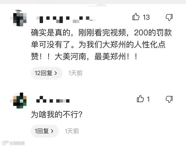 网友的留言大致分两种情况,看视频免罚款和无法享受该“福利”。