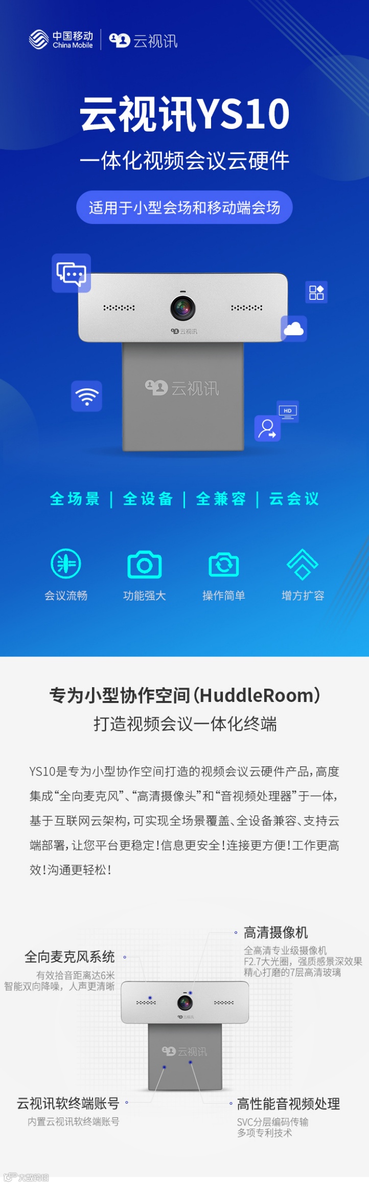 本月,中国移动云视讯强势出击,多款新品齐发,由随锐科技集团和中国移动联合开发的云硬件产品YS10正式登场。此前,该产品在“广州移动集客生态合作伙伴大会”首次亮相。