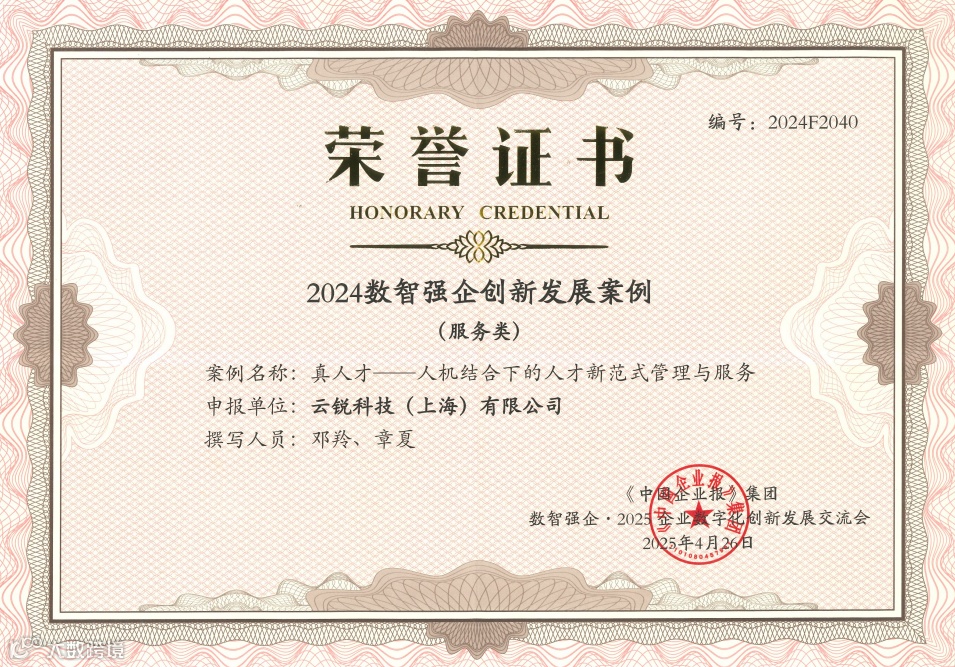 数智化不是技术堆砌,而是以客户价值为圆心的能力重构。此次获奖,既是对云锐科技YRHR过往实践的认可,亦为行业提供了“可量化、可复制、可持续”的转型样本。