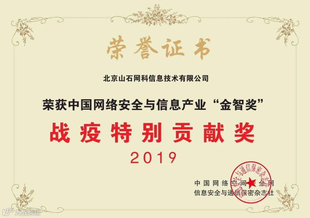 山石网科公司荣获“战疫特别贡献奖”