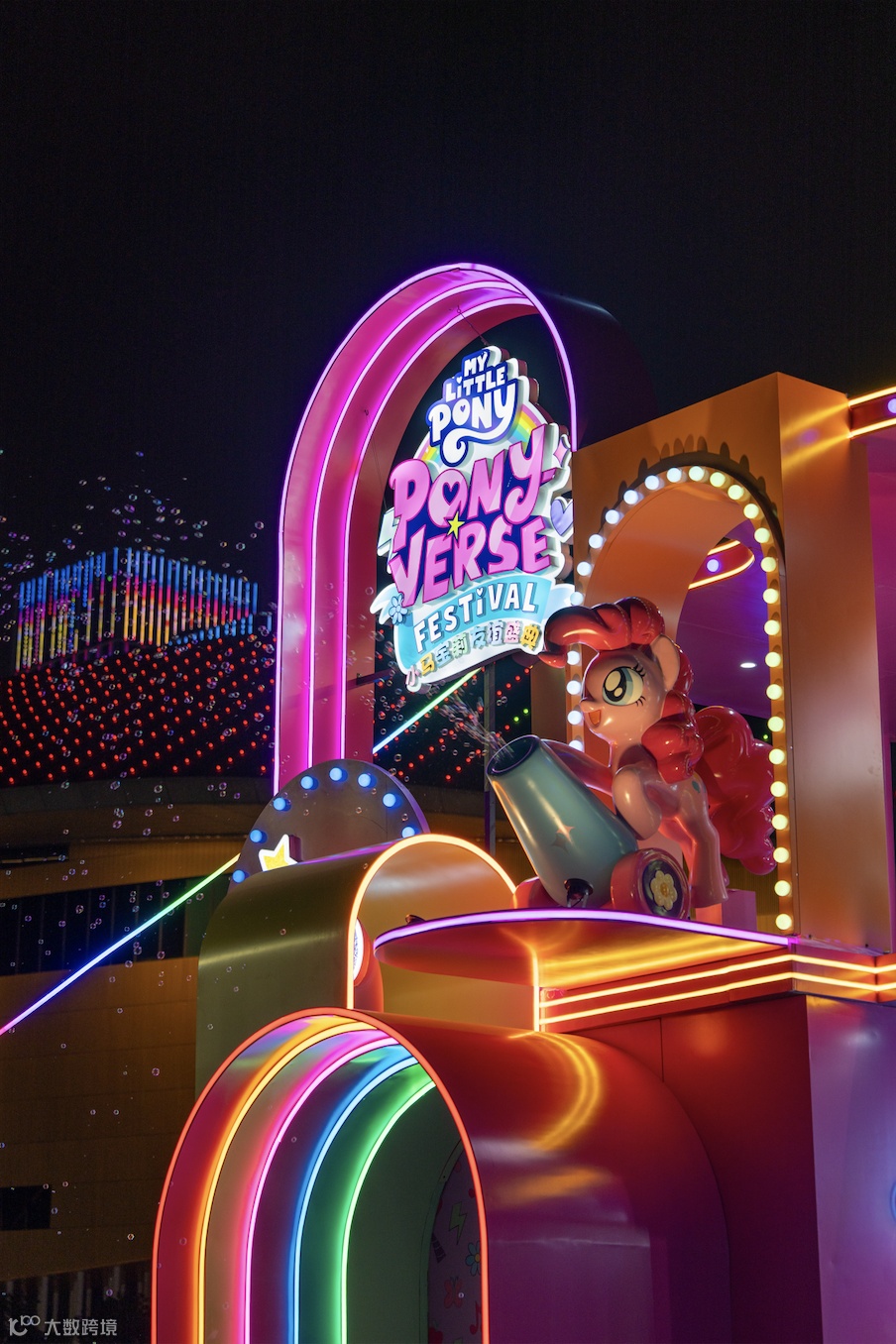 光影梦幻,装置灯带与泡泡交织成“魔法星光”